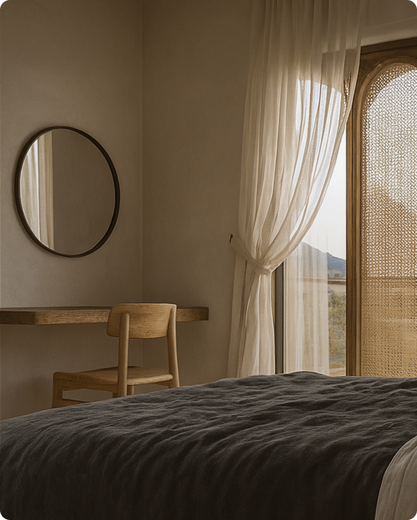 Me inspiro en la calma y la honestidad de los materiales nobles —la piedra, la madera, el hormigón— para crear espacios que dialogan con la luz y transmiten serenidad.